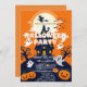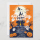 Mit einem Jack-O’-Lantern mit Hexenhut und Fledermausflügeln Set diese Einladung die Szene für ein spannendes Halloween-Party. (AI-Generated Artwork)