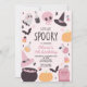 Rosa spooky halloween themed Geburtstag mit Gespenstern, die Hut, Gift und Kürbis.