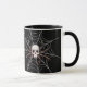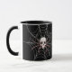 Einzigartige, gruselige Halloween-Seelenspinne auf einem Spinnennetz mit schwarzer Tasse. Diese Tasse wäre ein Geschenk für jeden oder eine tolle Ergänzung für ein Halloween-Party-Fest. Es besteht aus einer Farbpalette für das Innere und den Griff der Tasse.