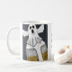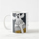 Der zitternde weiße Geist hat eine Tasse mit Bier gefüllt und ist bereit, ein großes spukhaftes Halloween-Party zu werfen.