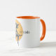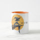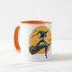 Dieses individuell gestaltbare "Halloween"-Design mit Tasse ist mit einer spukhaften Hexe ausgestattet, die auf einem Broomstick mit einem Text fliegt, den Sie personalisieren können.