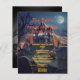 Ein Spooky House Halloween-Party Einladung auf schlichten Blatt Papier. Ein wunderschönes Haus mit orangefarbenem und gelbem Text
