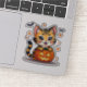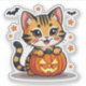 Bengalischer Kätzchenaufkleber im kawaii Halloween-Stil mit Kürbissen und festlichen Tönen, ideal für Katzenliebhaber und Saisonhandwerker.