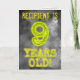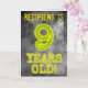 An der Vorderseite dieses mysteriös aussehenden, bearbeitbaren Geburtstagskarten-Designs steht die Meldung "9 JAHRE ALT!" mit Zeichen und Ziffern, die ein unheimliches, leuchtendes, aura-inspiriertes Aussehen auf einem trüben, wolkigen, nebeln-inspiriert Hintergrundmuster aufweisen. Die Vorderseite weist auch einen personalisierten Empfängernamen auf. Im Inneren befindet sich eine individuell anpassbare Geburtstagsgrüßbotschaft. Eine individuell anpassbare Geburtstagskarte wie diese könnte jemandem geschenkt werden, der seinen 9. Geburtstag feiert. [~Z0000365]