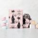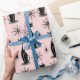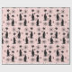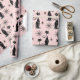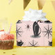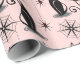 Meine originelle Vektorgrafik von schwarzen Retro-Katzen, Spinnennetze und Spinnen, in schwarz, weiß und grau, auf einem rosa Hintergrund, mit simulierter Textur.