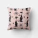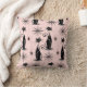 Meine originelle Vektorgrafik von schwarzen Retrokatzen, Spinnennetzen und Spinnen, schwarz, weiß und grau, auf rosa Hintergrund, mit simulierter Stoffstruktur. ©️ Christine Duffield
