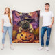 Spooky Mops Halloween Hexe und Kürbis Fleecedecke