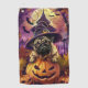 Spooky Mops Halloween Hexe und Kürbis Golfhandtuch