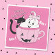 Niedlich rosa Halloween-Papierserviette mit einem whimsical Geist in einer Tasse und einer schwarzen Katze, die sich dahinter versteckt. Es kann mit Ihrem Text und Namen personalisiert werden. Das nicht beängstigende Design macht es zu einem idealen Ort für ein kinderfreundliches Party. Vergiss nicht, eine Größe zu wählen. © ArianeC Illustrations-Alle Rechte vorbehalten