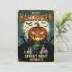 Starten Sie mit dieser kühnen Einladung in Ihr Halloween-Party mit einer riesigen Jack-o’-Laterne und einem Kessel, der zum Bubeln einlädt! (AI-Generated Artwork)