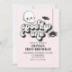 Spooky Ein Halloween 1. Geburtstagseinladung mit Geist, Fledermaus und Spinne.
