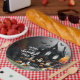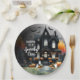 Spooky 1. Geburtstag Party Papierplatte. Feiern Sie Ihren ersten Geburtstag mit dieser lustigen und festlichen Papiertafel mit dem Satz "Name is A Spooky One" an der Spitze in spielerischer Schrift und einfachen Schriftart. Das Design präsentiert ein Spuk, klassisches Schwarz-Weiß-Haus mit niedlichen Gespenstern und Fledermäusen sowie orangefarbenen Pop aus Kürbissen, Jack-o’-Laternen und einem leckeren Baum. Ideal, um Leckereien zu servieren, während das Halloween-Party Thema Spaß und whimsical behalten.