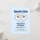 Feiern Sie mit unserem "Spooky One" Halloween 2009 den niedlichsten 1. Geburtstag! Dieses charmante Design verfügt über zwei bezaubernde Geister mit schwarzen Bogen-Krawatte und Sternen auf pastellblauem Hintergrund, die der Sportsaison eine Touch Süße verleihen. Auf der Vorderseite werden elegant alle Veranstaltungsdetails angezeigt. Ideal für eine unvergessliche und lustige Feier, wird diese Einladung Ihre Gäste begeistern und Set für ein wunderbar zauberhaftes Party. Sie können es mit Ihren Informationen personalisiert oder im Designwerkzeug weiter bearbeiten, um den Schriftart zu vergrößern oder zu verkleinern.