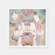 Retro Spooky Ein 1. Geburtstag Party Napkins - Lass uns Groovy holen! Das Design zeichnet sich durch einen farbenfrohen Hintergrund mit einem bohenhaften Regenbogen aus. Coole Retro-Illustrationen schmücken die schlichte Vorlage mit bezaubernden Hippie-Gespenstern, Schädel-Blume, spukhafter Diskokugel und spoktaculärer Bonbons.
