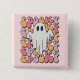 Dieses lustige und festliche Halloween-Design bietet eine klassische Ghost-Illustration vorne und Mitte, umgeben von dem Wort "Spooky" wiederholt in einem kühnen, blubbly Schriftart. Der Text ist in lebhaften, im Retro-inspiriert Farben wie weichen Pinks, Purples und Orangen überlagert, was einen spielerischen Kontrast zu der schlichten weißen Figur des Geistes schafft. Die ausdruckslosen schwarzen Augen des Geisters verleihen dem Design eine Touch unheimlichen Charmes, während die gewölbte, gestapelte Typografie dem Design ein fromes, nostalgisches Ambiente verleiht.