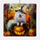 Spooky Samoyed Hund Halloween Hexe und Kürbiskröte Keramikornament