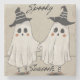 Add a touch of Halloween whimsy to your home with this charming stone coaster featuring two ghostly pals dressed in classic white sheets and striped witch hats. With rosy cheeks, striped stockings, and a hand-in-hand pose, these adorable spirits bring playful charm to any tabletop.