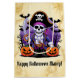 Send a frightfully fun Halloween greeting with this bold and playful pirate-themed postcard! Featuring a grinning skeleton pirate in full regalia — complete with pumpkins, bats, and haunted trees — this design captures the spirit of the season with a cheeky nautical twist. Set against an aged treasure map background with accents of purple and black, it’s perfect for pirate-loving friends, Halloween party hosts, or anyone who enjoys a little humor with their haunt. This Halloween card is customizable — add your own message, name, or spooky wishes. Whether you're sending greetings across the seas or delivering it with a bottle of rum, this card is sure to make ‘em smile (or cackle like a cursed buccaneer). Edit from the product page or to change font style of color, use the design tool.