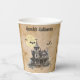 Spooky Spuk Haus Halloween-Party Papiertüten. Dieses Design zeigt eine eindringliche Szene auf der Vorderseite, mit einem verfallenen, gotischen Herrenhaus, das ominös gegen einen dunklen, bewölkten Himmel stehend ist. Ein großer, unheimlicher Vollmond leuchtet hinter dem Haus und wirft ein geistreiches Licht aus, das die verwitterten Ziegelsteine und kaputten Fenster hervorhebt. Fledermäuse werden beim Überschwemmen über den Mond silhouettiert, was die spukhafte Atmosphäre noch verstärkt.