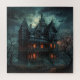 Spooky Puzzle aus dem Spuk Haus. © Jigsaw Wonderland at Zazzle. Dieses Rätsel hat ein großes, spöttisches Spuk Haus darauf. Es gibt Fledermäuse, die umherfliegen, tote Bäume im Hof, aber das Licht ist an.