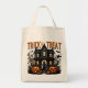 Spooky Trick oder Leckerbissen in einem Spuk Haus Tragetasche