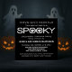 Einfaches und modernes Spooky Typografy Halloween-Party Einladend in Schwarz und Weiß mit einem coolen Textdesign mit zwei skurrilen Geistern, die durch das Wort "Spooky" gucken. Diese stilvolle Party Einladung eignet sich hervorragend für Ihren Halloween-Bash in diesem Jahr und lässt sich leicht mit den Details Ihres lustigen Party anpassen. Klicken Sie auf die Schaltfläche "Anpassen", um das Designelement zu verschieben, die Schriftart oder Textfarben zu ändern und zusätzlichen Text hinzuzufügen/zu entfernen.