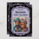 Fügen Sie Ihrem Halloween-Party mit dieser einzigartigen Karikatur eine Touch gotischen Glamours hinzu. Dieses Venezianische Paar mit seiner feinsten Maskenbekleidung ist perfekt für ein lustiges und elegantes Halloween-Fest. Passen Sie die Einladung mit Ihren Party-Details an, einschließlich Datum, Uhrzeit, Ort und Kleidungscode. Das Design ist mit einem schwarzen Hintergrund mit einem gotischen Rahmen, Schädelakzenten und einer Touch lila für eine Touch von Mysterium ausgestattet. Ideal für: Halloween-Partys, Maskenbälle, gotische Veranstaltungen.