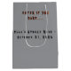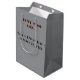 Dieser Halloween-Geschenksack weist ein kühnes Frontdesign mit einem großen orangefarbenen Kürbis, einem blauen Geist, einem gruseligen Baum mit Zweigarmen, fliegenden Fledermäusen und einem leuchtend hellblauen Mond auf - alles Set vor einem weichen grauen Hintergrund. Die Phrase "Spooky Vibes" erscheint im schwarzen Gatekeeper-Schriftart mit einem orangefarbenen Schlagschatten, der einen gotischen Flair hinzufügt. Auf der Rückseite ist die Phrase "Enter if you wage.." in passendem Schriftart und Farbe gestaltet, gefolgt von personalisierten Veranstaltungsdetails wie Ellas Spooky Bash und dem Datum. Ideal für Halloween-Partys, gespenstische Feiern oder festliche Oktober-Gaben.