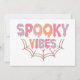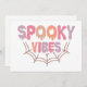 Dieses lustige und festliche Halloween-Design enthält den Satz "Spooky Vibes" in einem spielerischen, tropfenden Schriftart, der dem Text einen gooey, unheimlichen Effekt verleiht. Die Wörter sind in sanften Pastelltönen in Rosa, Orange, lila und Pfirsichfarben gehalten und fügen dem sprichwörtlichen Thema eine leicht gemachte und skurrile Drehung hinzu. Unter dem Text fügt eine einfache Spinnennetz-Illustration in sanft brauner Farbe eine klassische Halloween-Touch hinzu und bindet das Design zusammen. Die Kombination aus Pastellfarben und sprichwörtlichen Elementen schafft einen niedlichen und etwas gruseligen Kontrast, der sich perfekt zu Halloween eignet