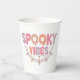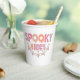 Dieses lustige und festliche Halloween-Design enthält den Satz "Spooky Vibes" in einem spielerischen, tropfenden Schriftart, der dem Text einen gooey, unheimlichen Effekt verleiht. Die Wörter sind in sanften Pastelltönen in Rosa, Orange, lila und Pfirsichfarben gehalten und fügen dem sprichwörtlichen Thema eine leicht gemachte und skurrile Drehung hinzu. Unter dem Text fügt eine einfache Spinnennetz-Illustration in sanft brauner Farbe eine klassische Halloween-Touch hinzu und bindet das Design zusammen. Die Kombination aus Pastellfarben und sprichwörtlichen Elementen schafft einen niedlichen und etwas gruseligen Kontrast, der sich perfekt zu Halloween eignet
