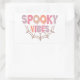 Dieses lustige und festliche Halloween-Design enthält den Satz "Spooky Vibes" in einem spielerischen, tropfenden Schriftart, der dem Text einen gooey, unheimlichen Effekt verleiht. Die Wörter sind in sanften Pastelltönen in Rosa, Orange, lila und Pfirsichfarben gehalten und fügen dem sprichwörtlichen Thema eine leicht gemachte und skurrile Drehung hinzu. Unter dem Text fügt eine einfache Spinnennetz-Illustration in sanft brauner Farbe eine klassische Halloween-Touch hinzu und bindet das Design zusammen. Die Kombination aus Pastellfarben und sprichwörtlichen Elementen schafft einen niedlichen und etwas gruseligen Kontrast, der sich perfekt zu Halloween eignet