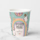 Retro Spooky Vibes Halloween-Party Papier Cups - Lasst uns Groovy! Das Design zeichnet sich durch einen farbenfrohen Hintergrund mit einem bohenhaften Regenbogen aus. Coole Retro-Illustrationen schmücken die schlichte Vorlage mit bezaubernden Hippie-Gespenstern, Schädel-Blume, spukhafter Diskokugel und spoktaculärer Bonbons.