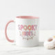 Dieses lustige und festliche Halloween-Design enthält den Satz "Spooky Vibes" in einem spielerischen, tropfenden Schriftart, der dem Text einen gooey, unheimlichen Effekt verleiht. Die Wörter sind in sanften Pastelltönen in Rosa, Orange, lila und Pfirsichfarben gehalten und fügen dem sprichwörtlichen Thema eine leicht gemachte und skurrile Drehung hinzu. Unter dem Text fügt eine einfache Spinnennetz-Illustration in sanft brauner Farbe eine klassische Halloween-Touch hinzu und bindet das Design zusammen. Die Kombination aus Pastellfarben und sprichwörtlichen Elementen schafft einen niedlichen und etwas gruseligen Kontrast, der sich perfekt zu Halloween eignet
