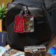 Spools von Weihnachten Weihnachtsfeiertag Rot und Gepäckanhänger