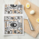 Dieses moderne Halloween-Design im Bauhaus-Stil verfügt über eine kühn gerahmte Schwarz-Weiß-Spinnenseide mit spitzigen Elementen wie Fledermäusen, Kürbissen und Skeletthänden. Eine stilvolle Mischung aus Minimalismus und festlichem Hauch für Ihre Oktoberfeiern.