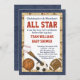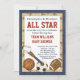 Erleben Sie eine Babydusche mit dieser rot-weißen und blauen All Star Sports Baby Shower Einladung. Mit Basketball, Fußball, Baseball und Fledermaus- und Fußball-Ball und können mit Ihren Babyduschinformationen individuell gestaltet werden. Einige Elemente von www.nitwitcollections.com Lizenz Nr. 41088