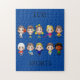 Puzzle mit kleinen Karikaturenfiguren und personalisierten Namen des Kindes.