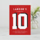 Die perfekte Einladung für Sportbegeisterte. Verwenden Sie die Lieblings-Teamfarben Ihres Kindes, um ihre Geburtstagsparty mit großem Alter und bearbeitbarem Typ zu koordinieren. Alle Elemente dieser Einladung sind vom Stil, der Größe, der Farbe und der Platzierung des Schriftartes bis hin zu den Hintergrundfarben vollständig anpassbar. Verwandeln Sie jedes Party in ein sportliches Ereignis, das einem Kindertraum würdig ist.