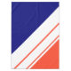 Dieses farbenprächtige, sportliche Design mit drei weißen, unterschiedlichen Breiten, diagonalen Parallelstreifen gegen lebendige, hellorange und marineblau-blaue Hintergründe.