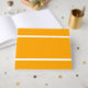 Dieses moderne Design zeichnet sich durch einen weißen horizontalen Streifen nahe den oberen und unteren Rändern des Designs vor einem lebendigen goldgelben Hintergrund aus.