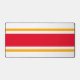 Dieses sportliche Design zeichnet sich durch goldgelbe Streifen aus, die einen breiten, hellen, roten Mittelstreifen vor weißem Hintergrund hervorheben.