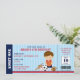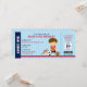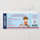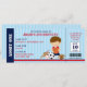 Einladung zum Sportticket in Rot & Marineblau mit blauem Hintergrund. Ideal für Jungen Geburtstagsparty / Babydusche.