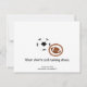 Eine coole sportliche Geburtstagsfeier. Ein blau-weißer Fußball und ein brauner Lederfußball-Akzent laden zum Verweilen ein. Passen Sie Ihre persönlichen Daten nach Ihren Wünschen an.