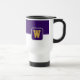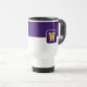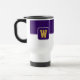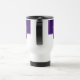 Der Kaffee-Reisetug wird hier mit einem farbigen Blockstil-Druck mit Beispielbuchstaben gezeigt, die Farben anpassen und ändern und Buchstaben oder kaufen, wie es ist. Farben Lila, Weiß Passen Sie dieses Objekt an oder kaufen Sie, wie es ist.