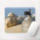 Ein Unterwasseratemgerättaucher oder ein Tauchenmeister werden Liebe, den hübschen Unterwasseratemgerät-Behälter auf Strand Mousepad in ihrem Büro-, Schreibtisch- oder Schlafsaalraum zu haben. Diese Gewohnheitssporttauchen-Mäusematte kennzeichnet eine Fotografie eines Unterwasseratemgerätluftbehälters auf einem sandigen tropischen Inselstrand mit großen Felsen und den karibischen Ozean im Hintergrund.
