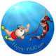 Weihnachtsmann kann Spaß sich entspannen und haben, wenn er nicht oben beim Nordpol beschäftigt ist. Gehend für ein Gleiten mit seinem trusty Seepferd, kreuzt er durch die Unterwasserwelt, die jedem Seegeschöpf Freude holt.