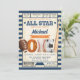 Diese sportbezogene Geburtstagsfeier-Einladung ist so konzipiert, dass sie zu unserer Sportsammlung passt! Dieses Thema ist perfekt für alle Geschlechter, Jungen oder Mädchen, mit lebhaften bunten Farben von Marine, Braun und Orange. Dieses Design umfasst einen Sportskappenbereich und einen Tickethintergrund. Auf der Rückseite finden Sie passende Sportbälle mit einem Hintergrund von Polka-Punkten der Marine. Um Ihre Veranstaltungsdetails zu bearbeiten, klicken Sie auf "Personalisieren" oder "Details", löschen Sie den vorausgefüllten Text und ersetzen ihn durch Ihren eigenen. Bei Fragen stehen wir Ihnen gerne zur Verfügung.