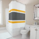 Dieses bunte Design mit goldgelben, orangefarbenen Rennstreifen hebt einen breiten grauen Mittelstreifen vor weißem Hintergrund hervor.