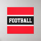 Dieses lustige athletische Design beinhaltet FOOTBALL Text in einem breiten schwarzen Mitte horizontalen Streifen, ergänzt durch weiße und leuchtend rote äußere Streifen. Der Text kann personalisiert sein.