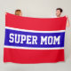 Sporty Bright White Blue Streifen "SUPER MAMA" Fleecedecke
